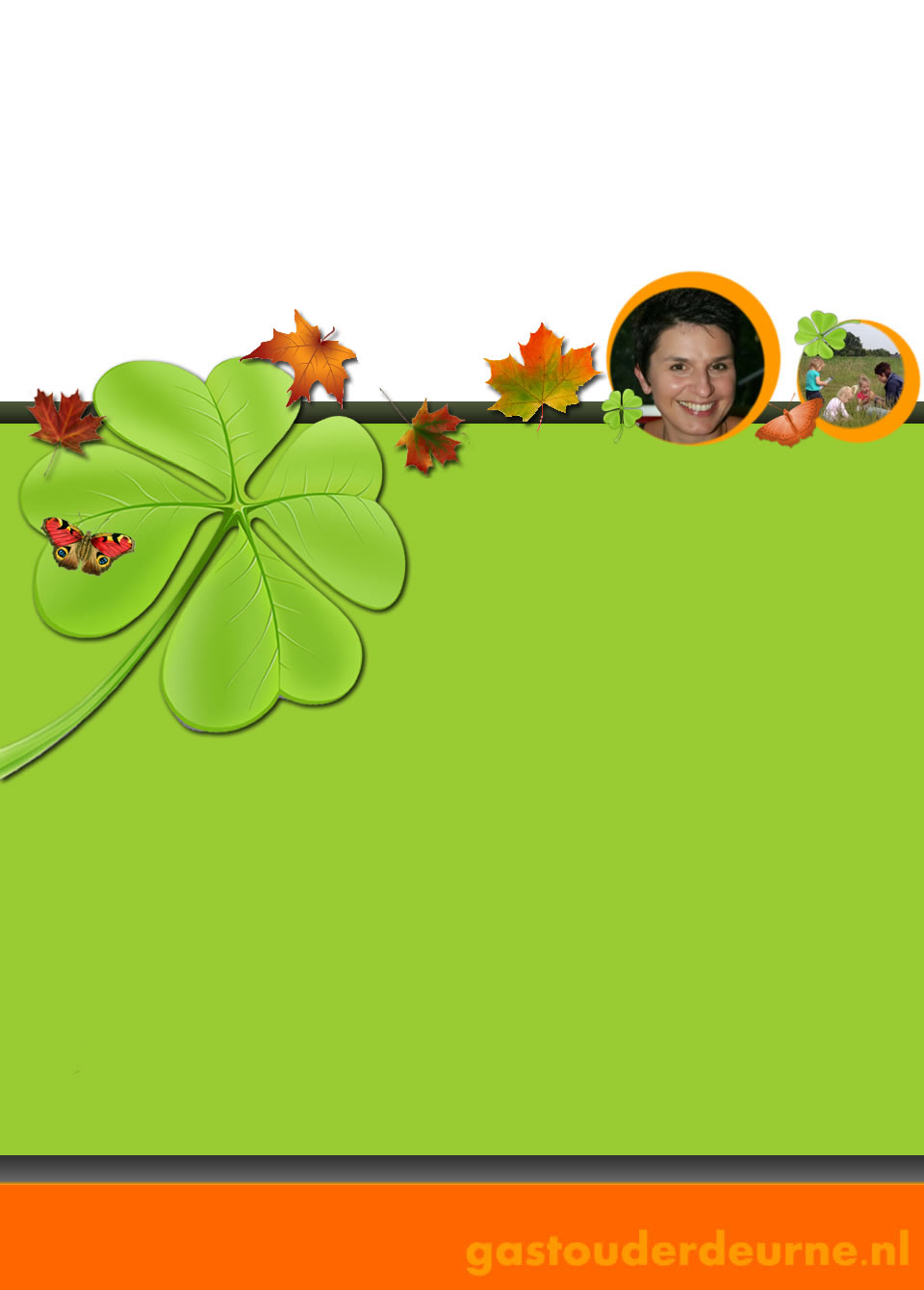 ................... Na het behalen van mijn propedeuse SPH, jarenlang vrijwilligerswerk bij Home-Start (opvoedondersteuning aan jonge gezinnen) en als peuterspeelzaalleidster is voor mij vast komen te staan wat ik eigenlijk al wist; dat ik met jonge kinderen wil werken, maar dan wel kleinschalig en dicht bij de natuur. Dit besef gecombineerd met het feit dat ons huis zowel binnen als buiten veel mogelijkheden biedt, heeft mij doen besluiten om thuis een kleinschalig kinderdagverblijf te starten: Klavertje 4.